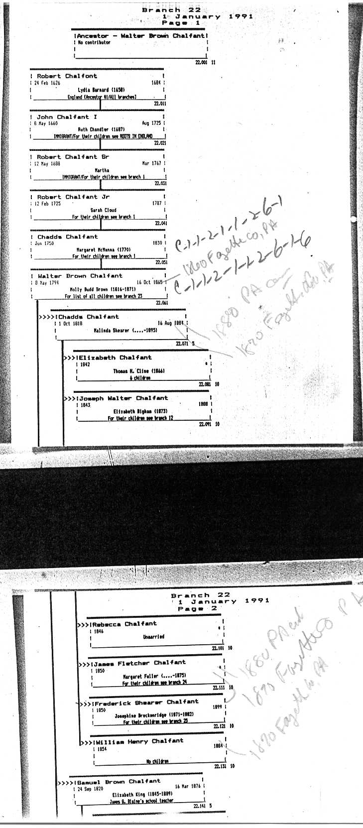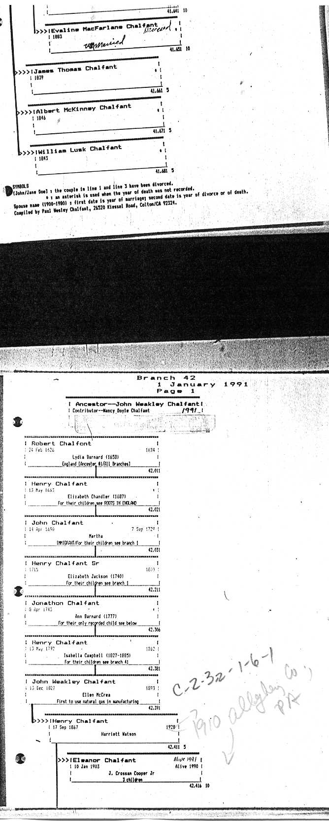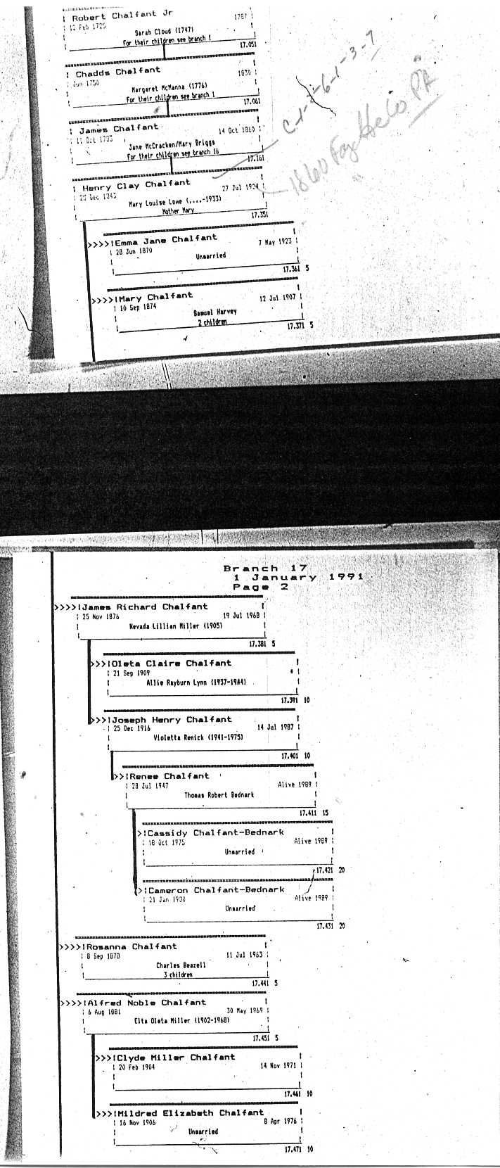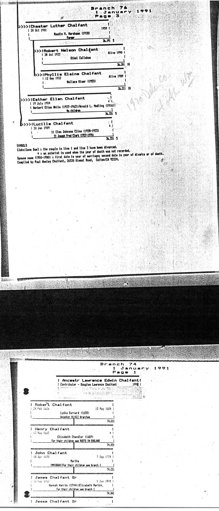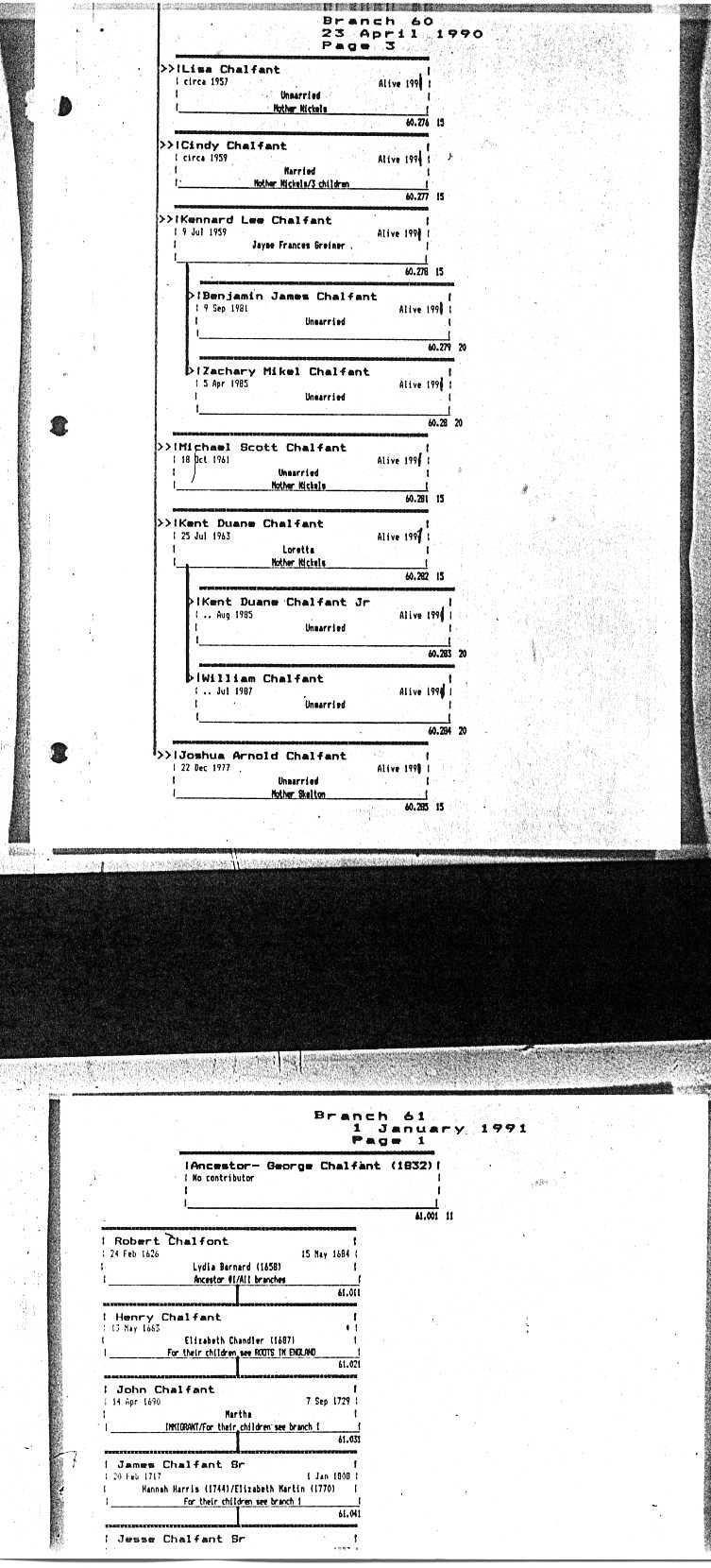 Chalfant Descendants List