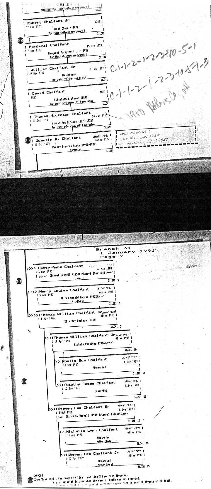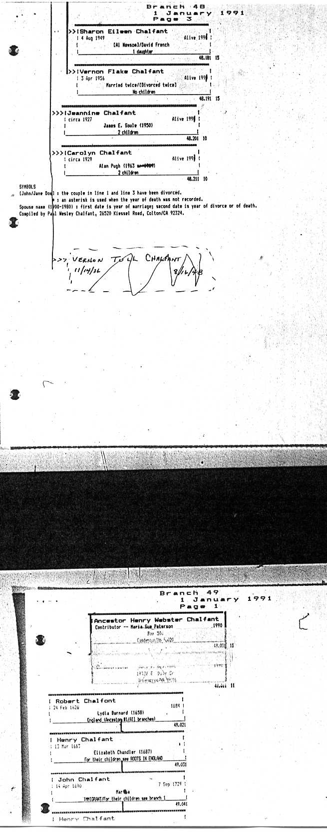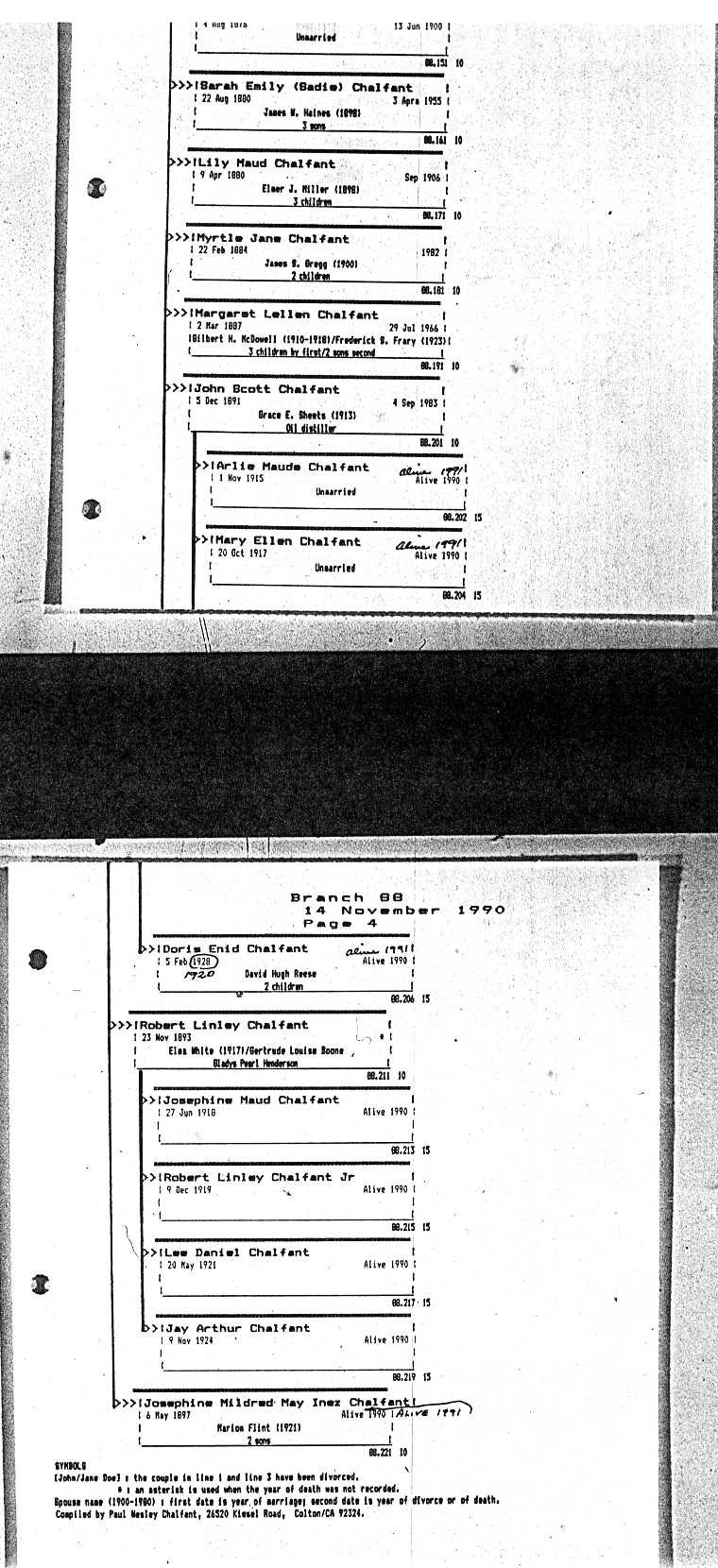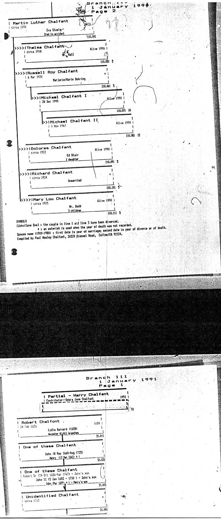 Chalfant Descendants List