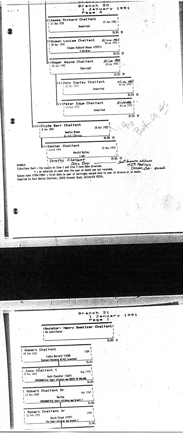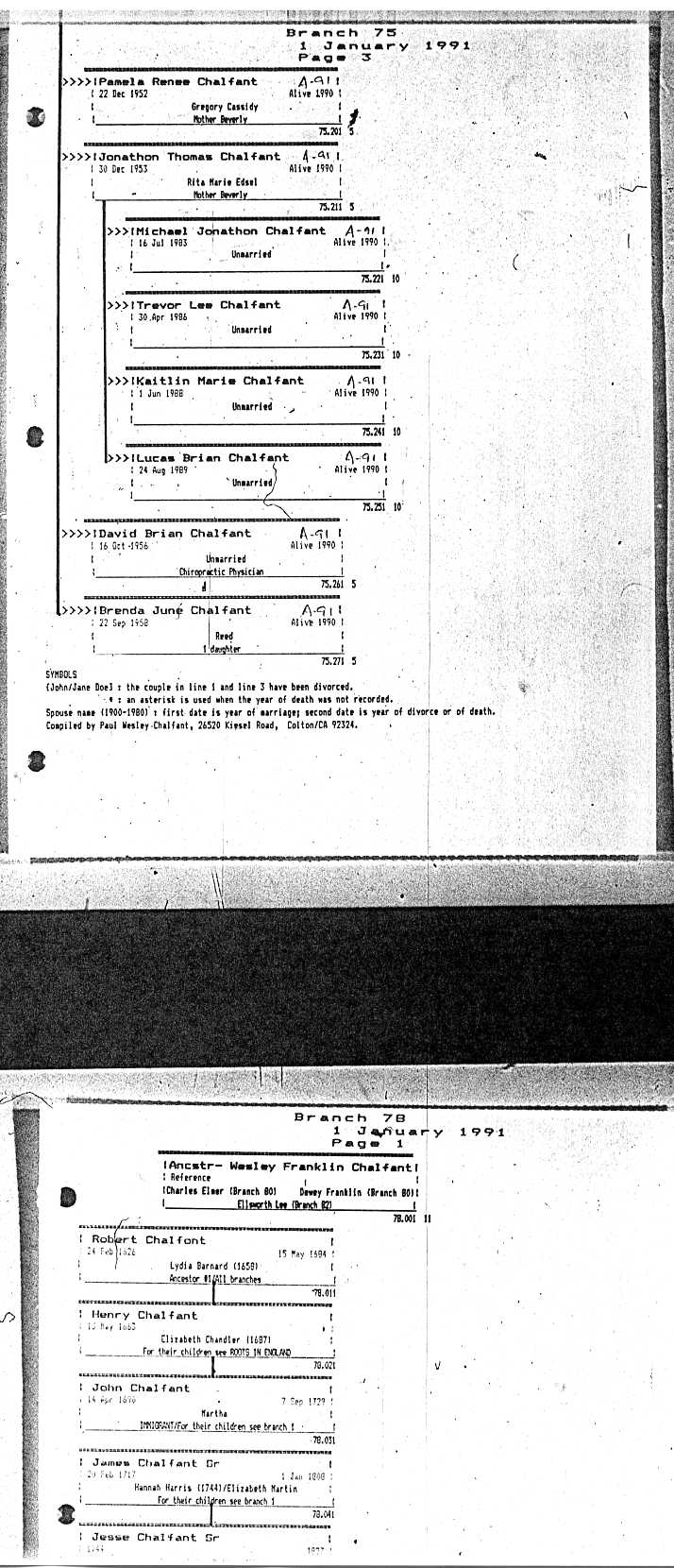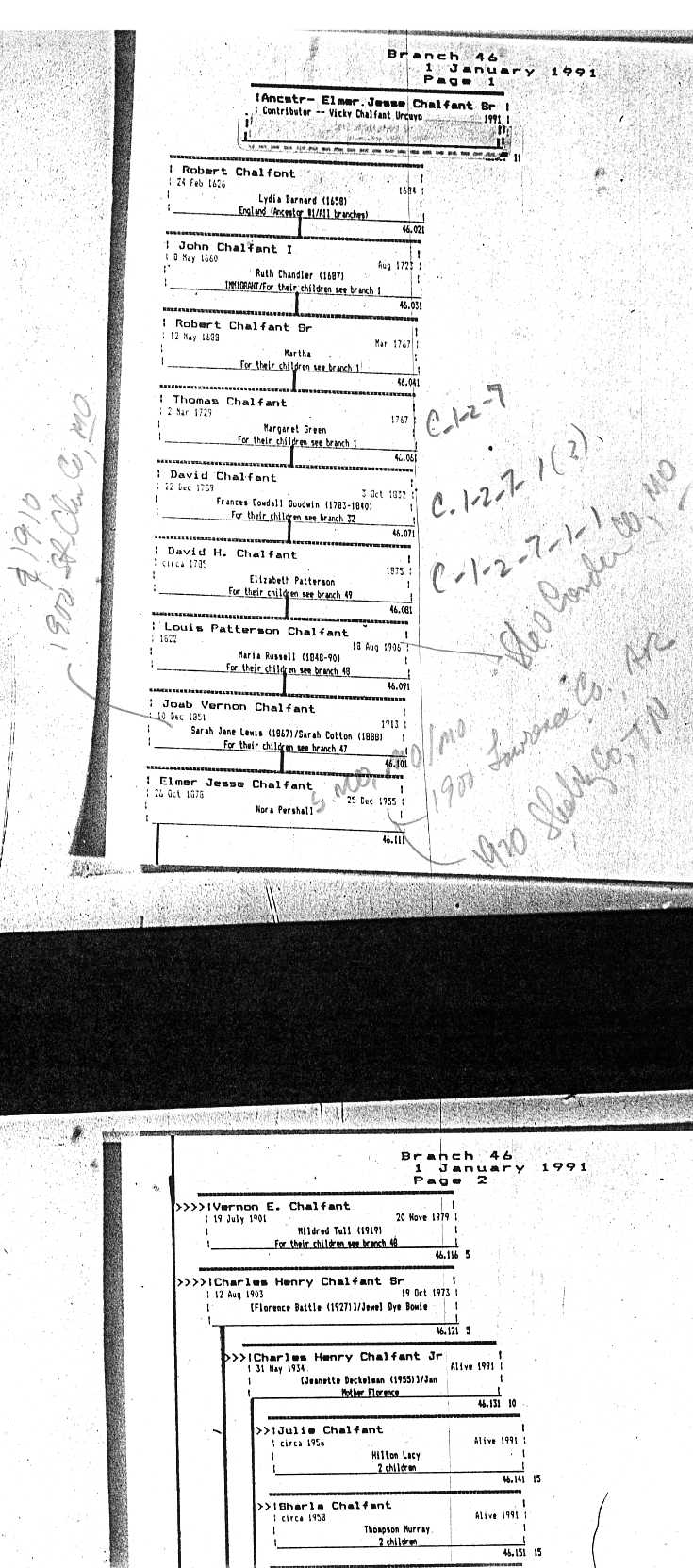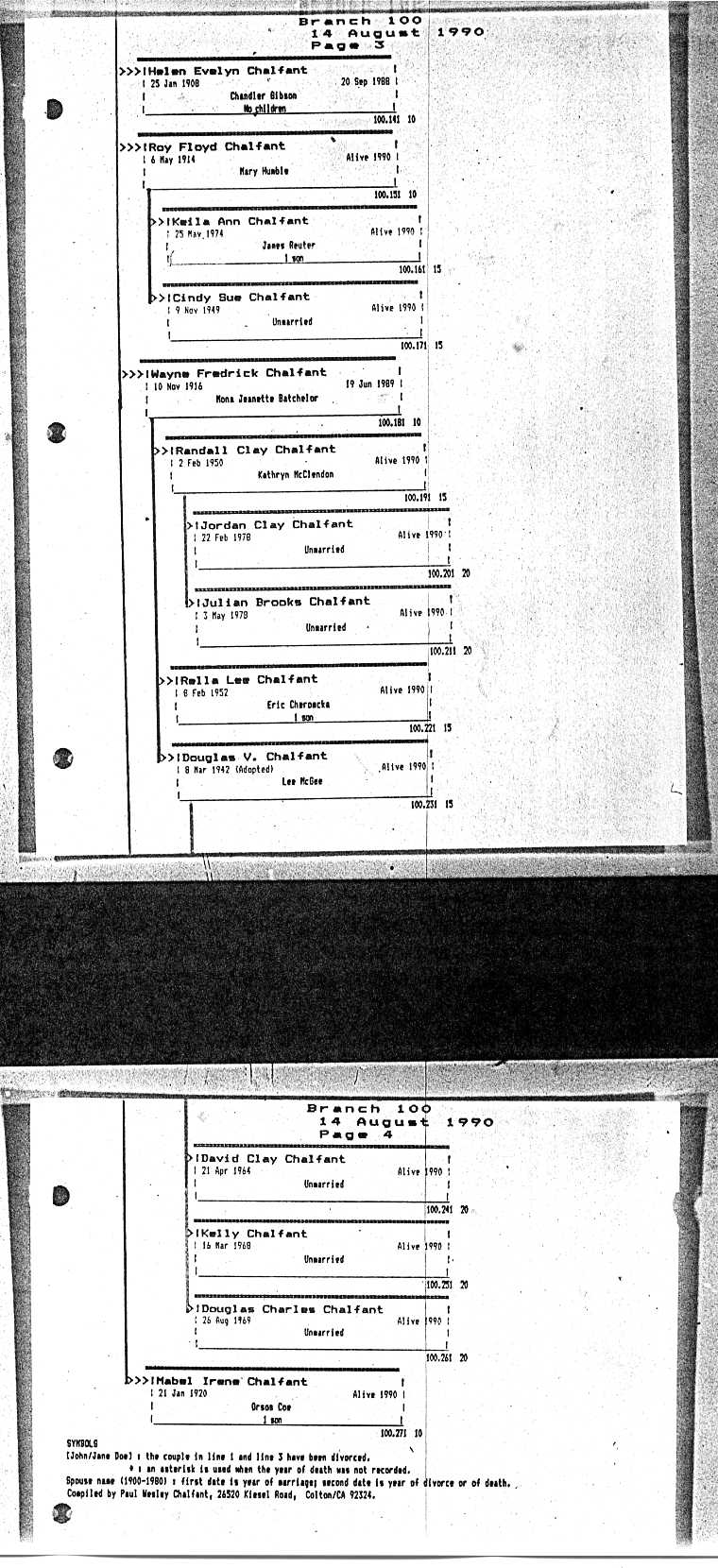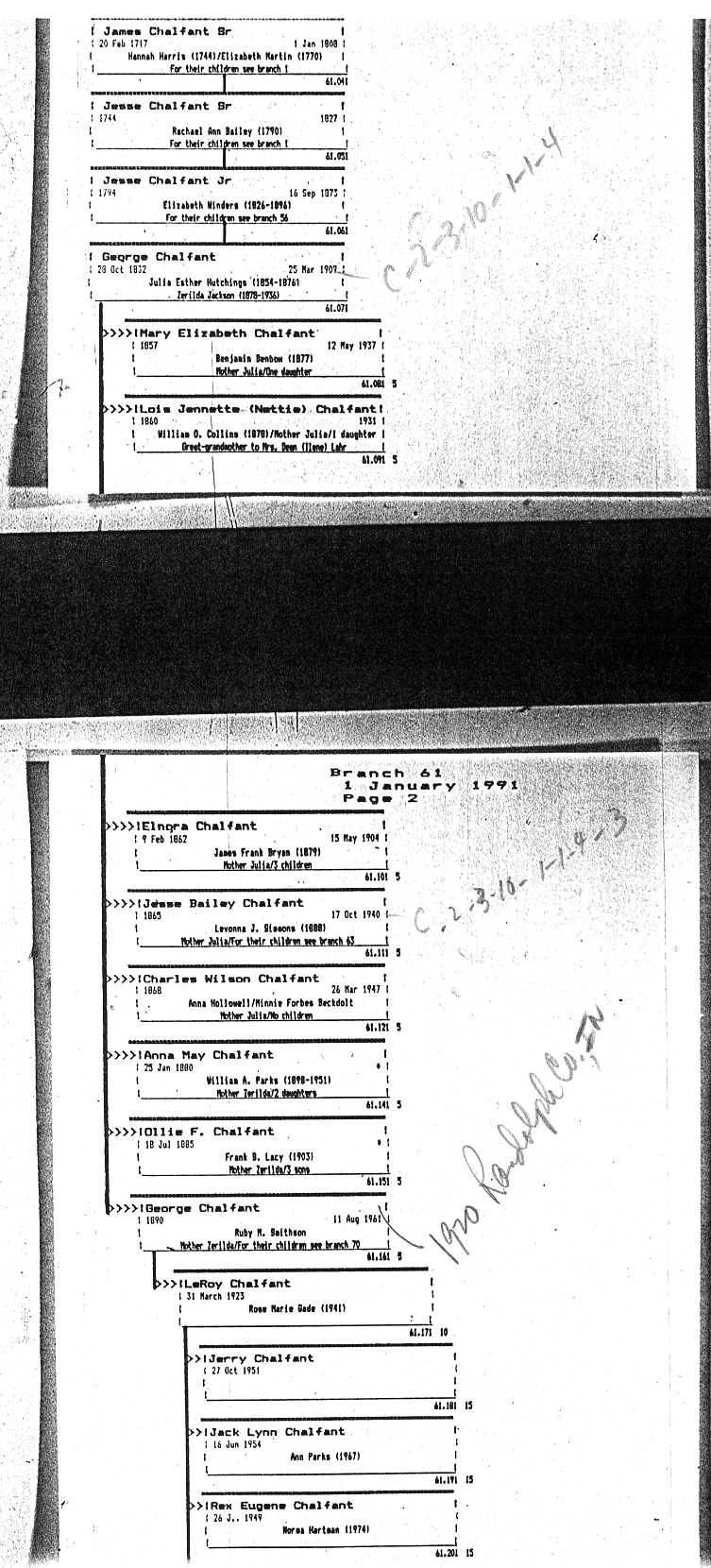 Chalfant Descendants List