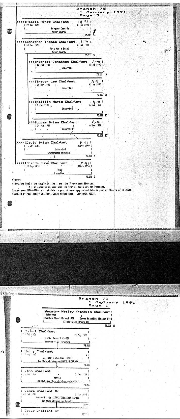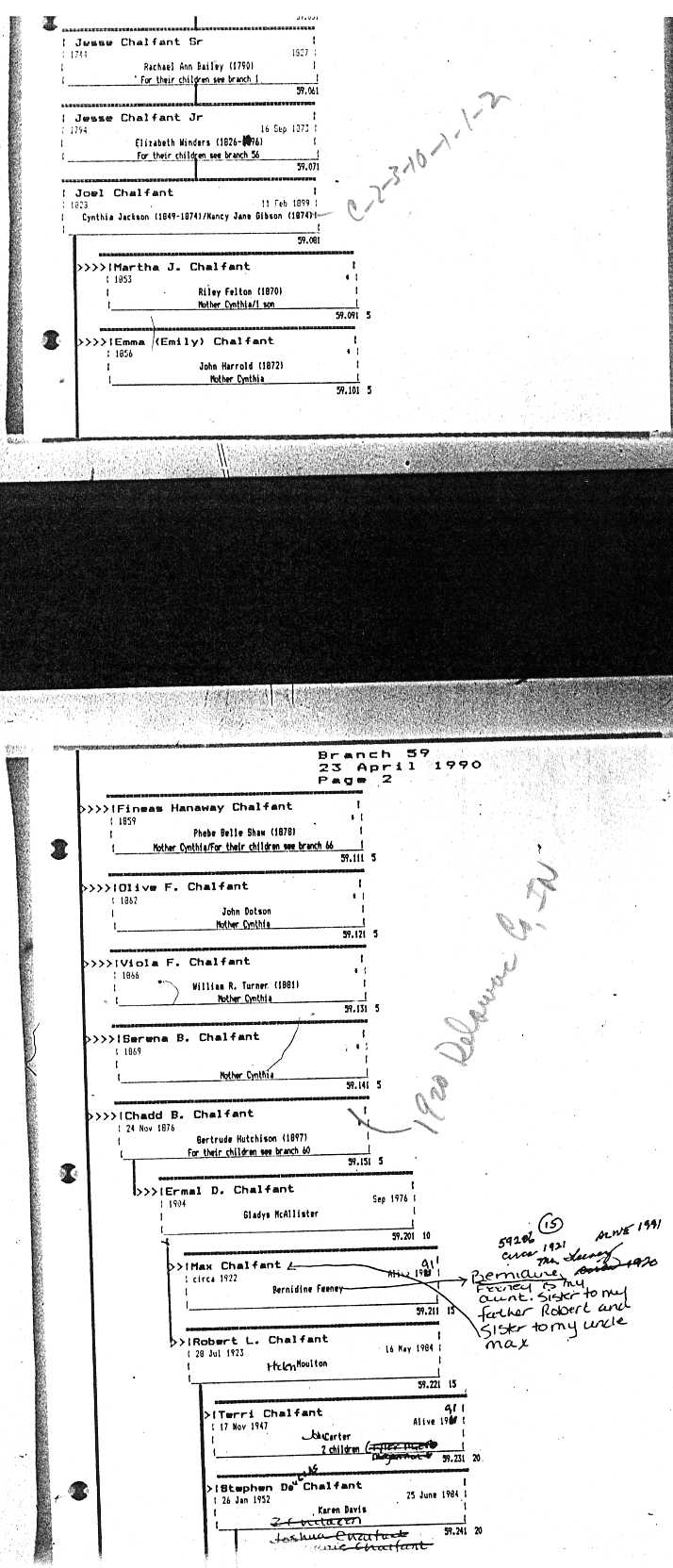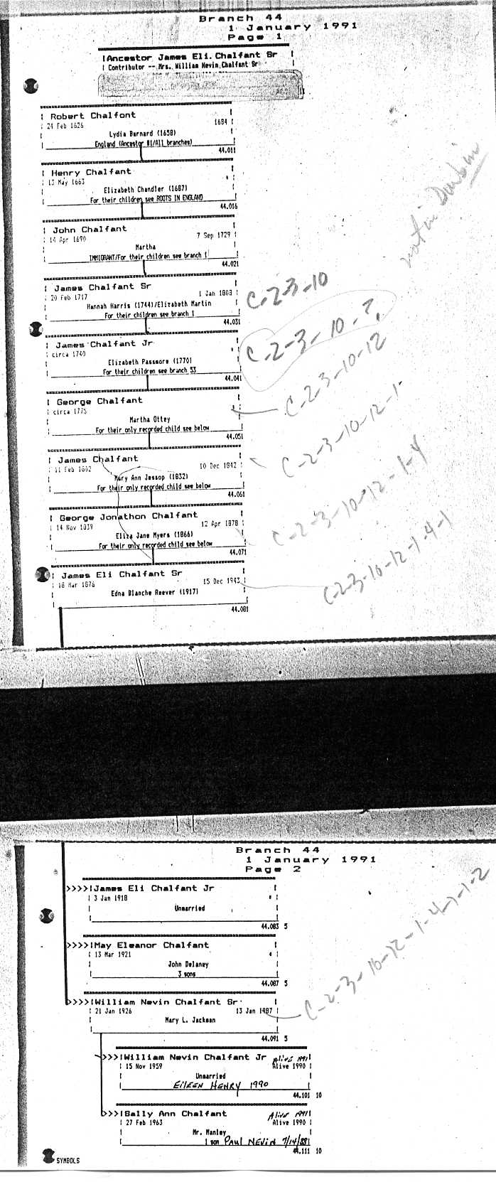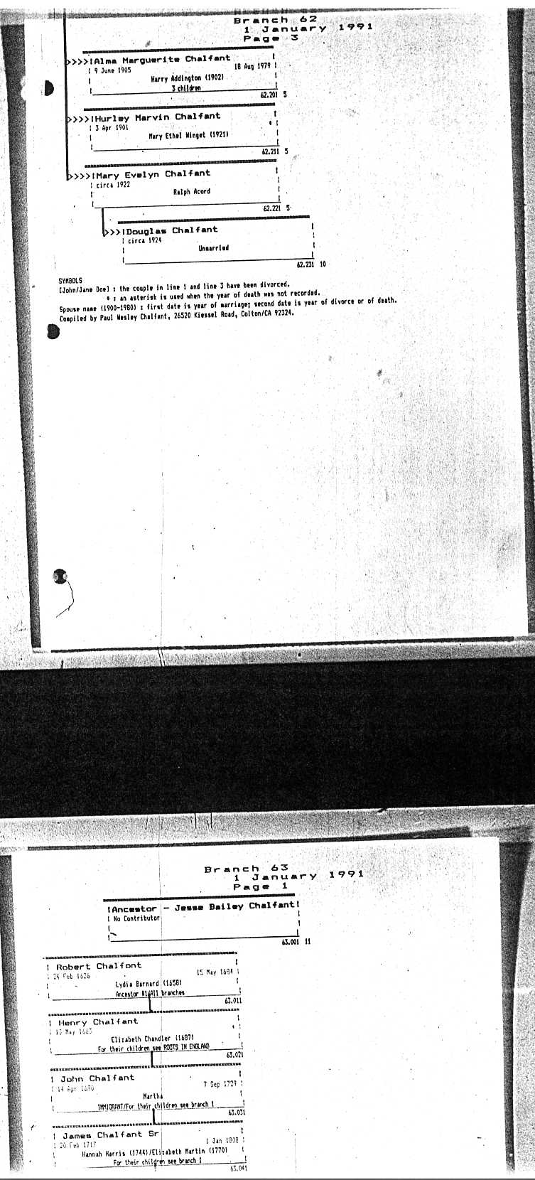 Chalfant Descendants List