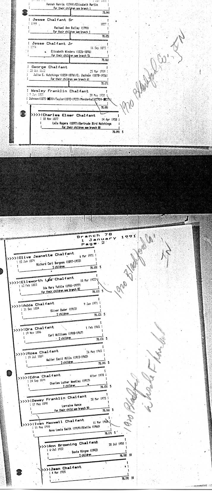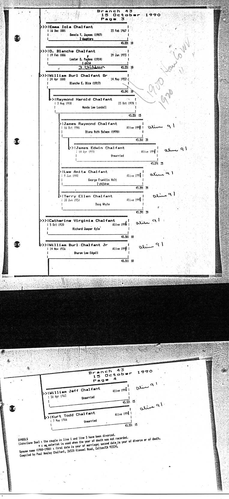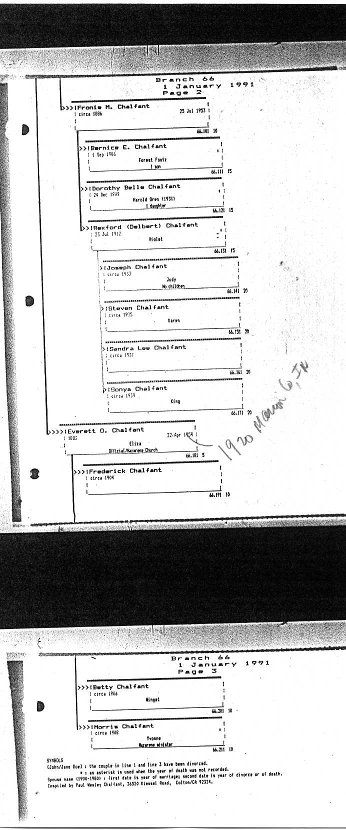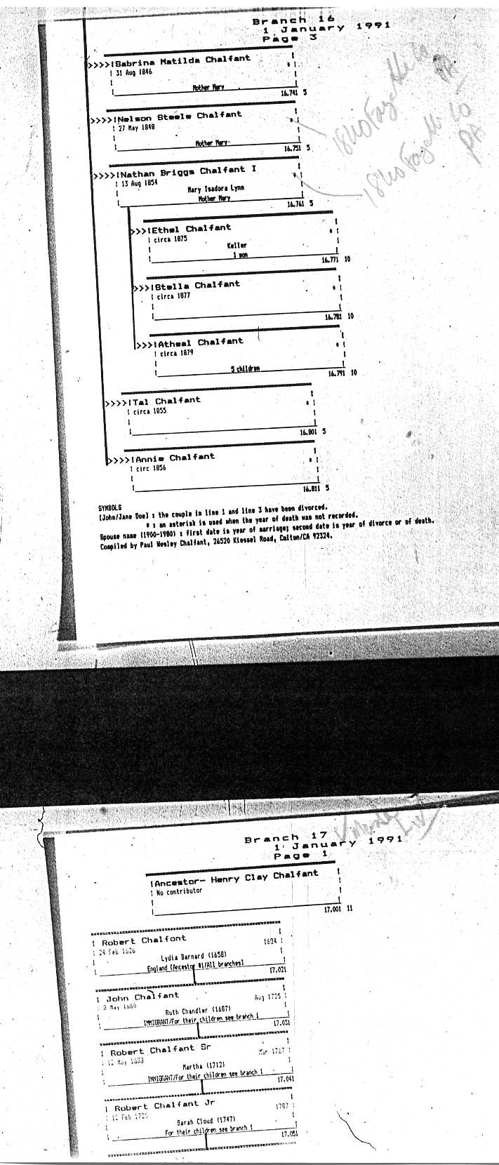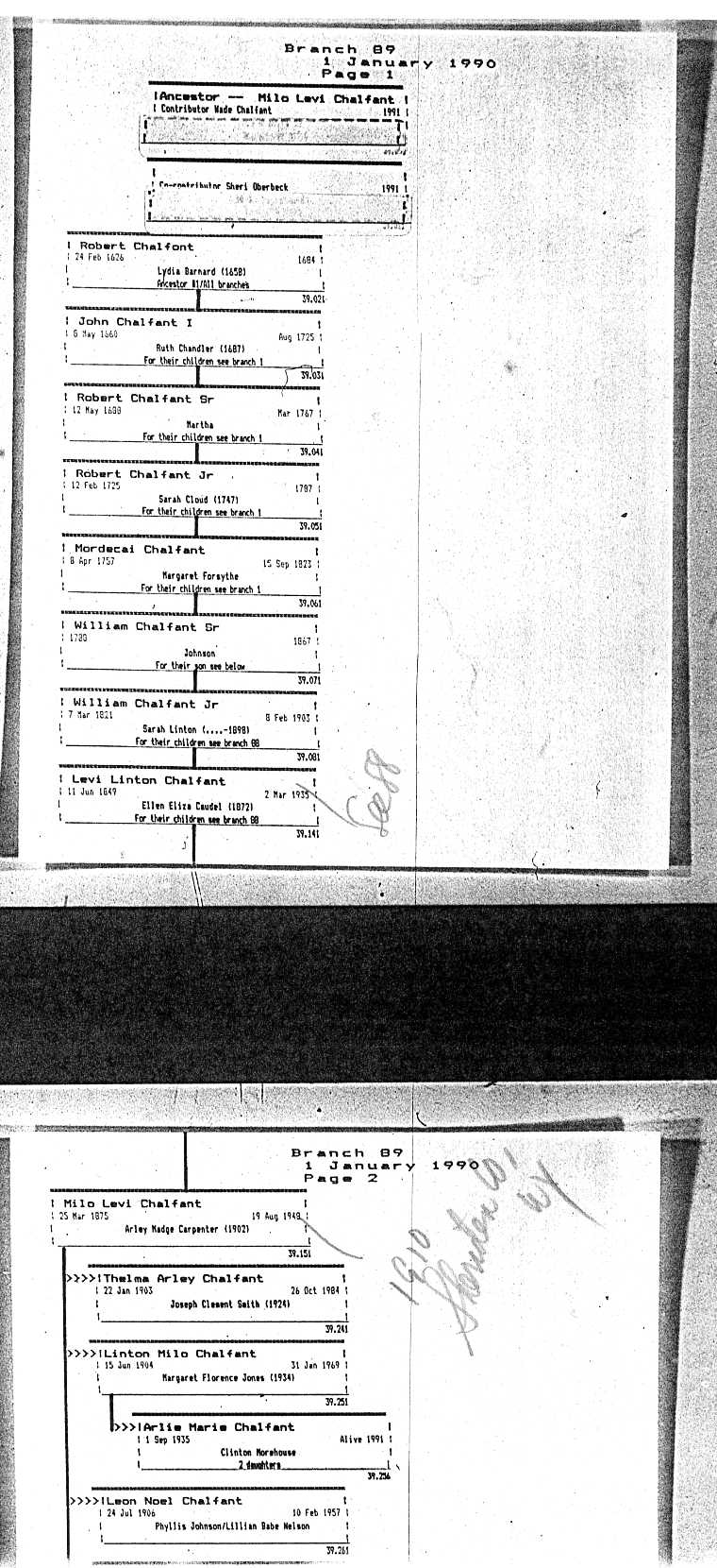 Chalfant Descendants List