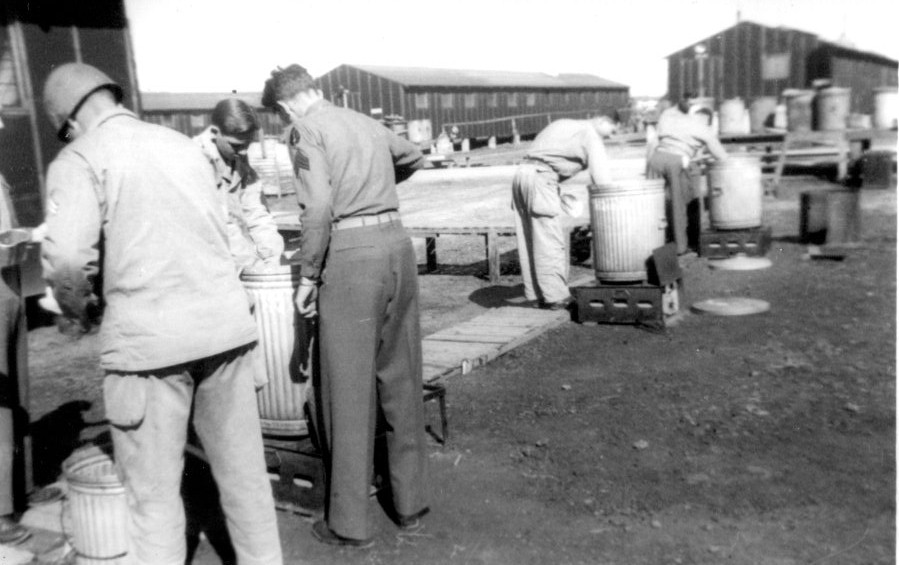 Kenneth Meadar Junior and Vern Addington (rear) Laudenback Germany July 1945