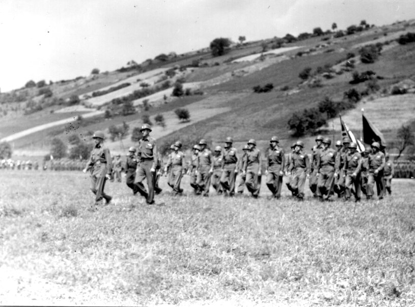 Group to be decorated at parade grounds Creglinger, Germany June 1945