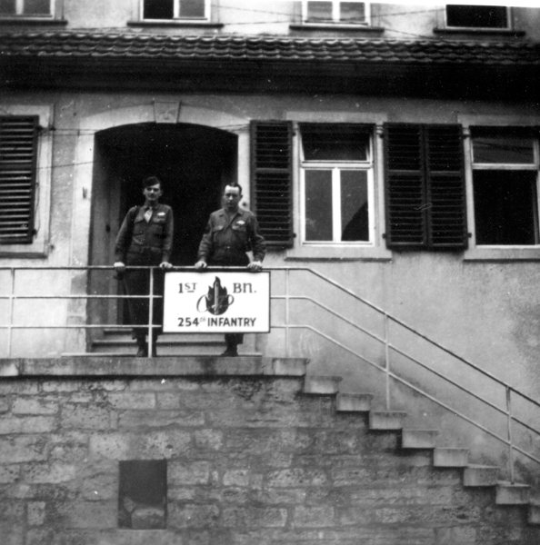 John J. Smith and Vern Addington, 1st Bn headquarters Igersheim Germany August 1945